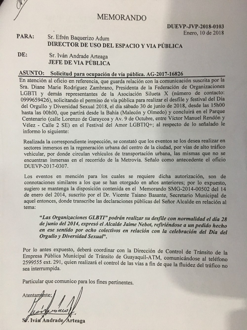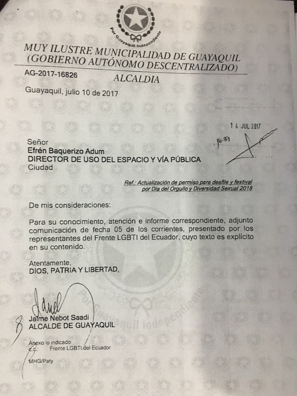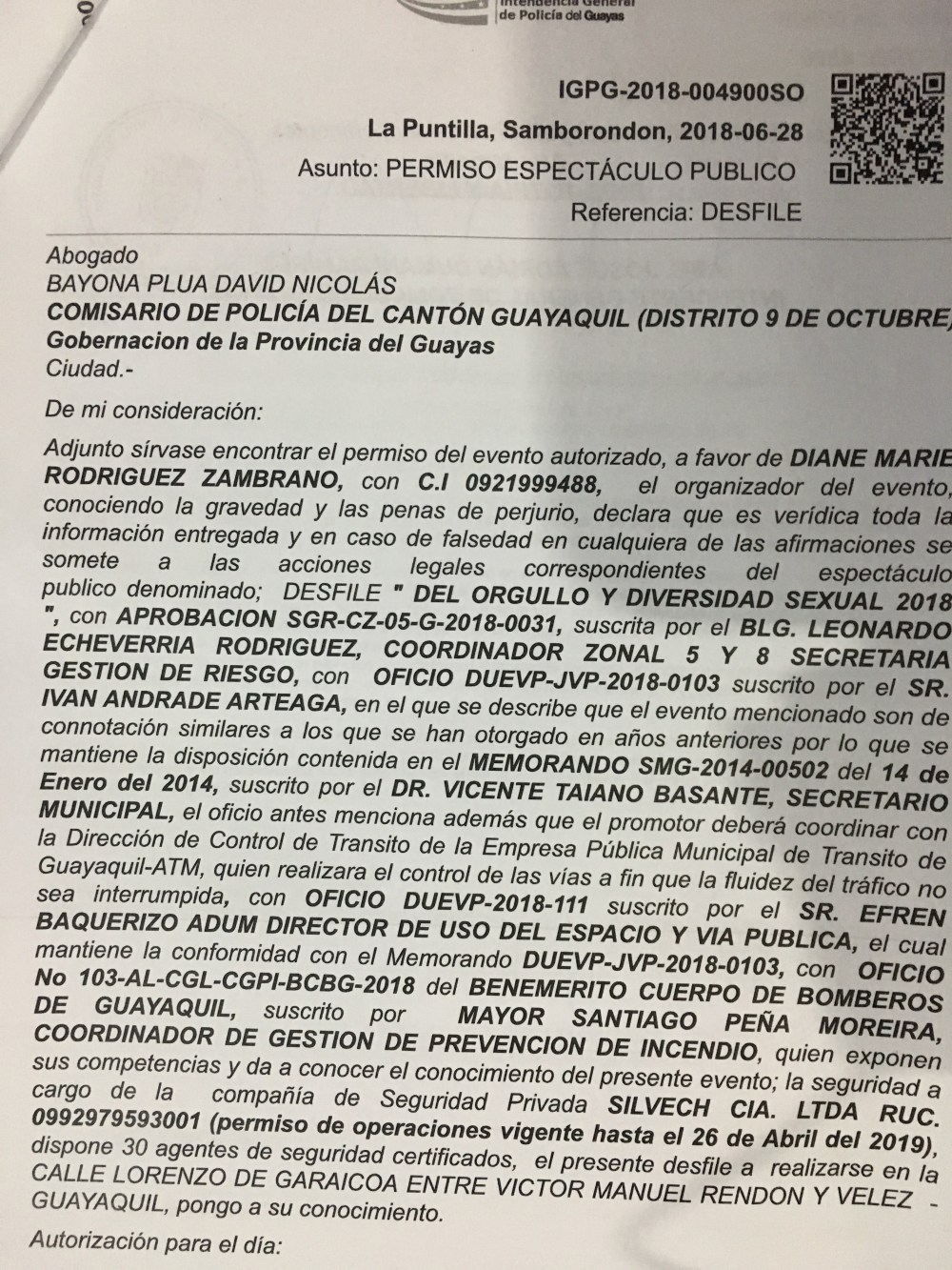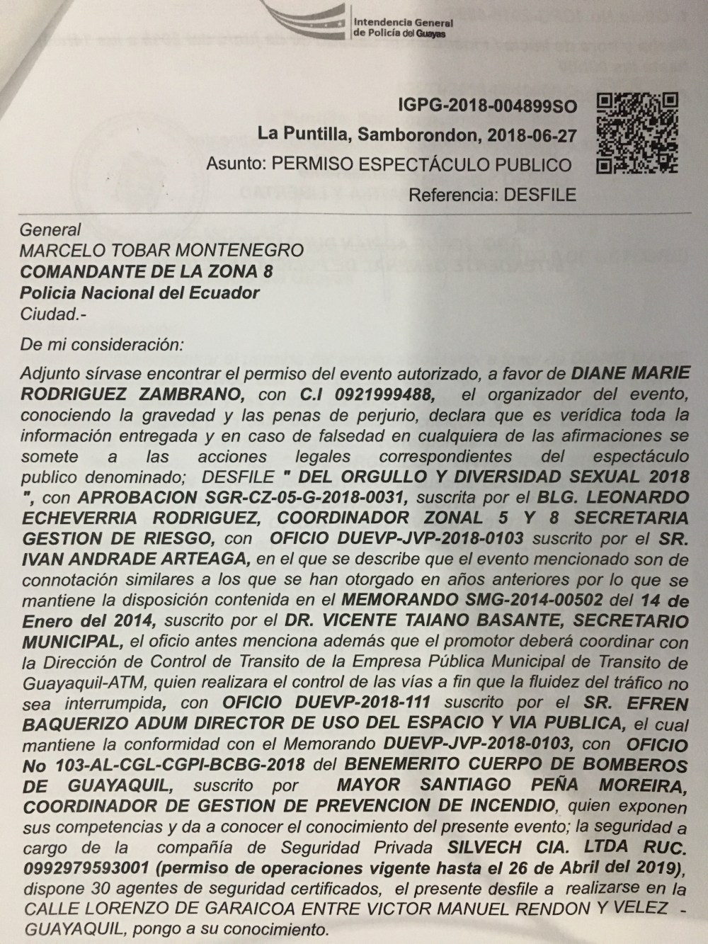 Permisos de la Marcha y Festival Orgullo Guayaquil 2018 Publicado por Redacción el 30 junio, 2018 Comparte esto: Compartir en X (Se abre en una ventana nueva) X Comparte en Facebook (Se abre en una ventana nueva) Facebook Compartir en Telegram (Se abre en una ventana nueva) Telegram Compartir en WhatsApp (Se abre en una ventana nueva) WhatsApp Me gusta Cargando... Relacionado