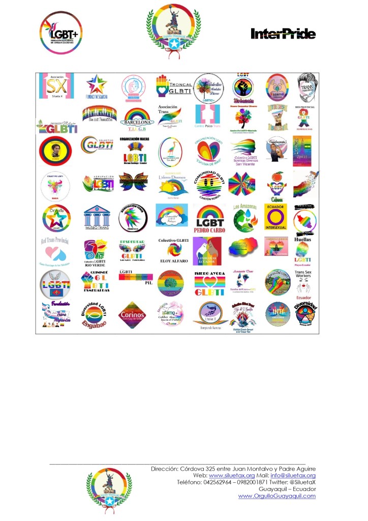 | Econ. Isaías Álvarez Presidente Observatorio LGBTI Asesoría del Orgullo Guayaquil | Sr. Zack Elías Morales Director Asoc. Silueta X Subcoordinador Orgullo Guayaquil | Nancy Charcopa Colectiva Lesbo-bi Ecuador Coord. Logística Orgullo Guayaquil |